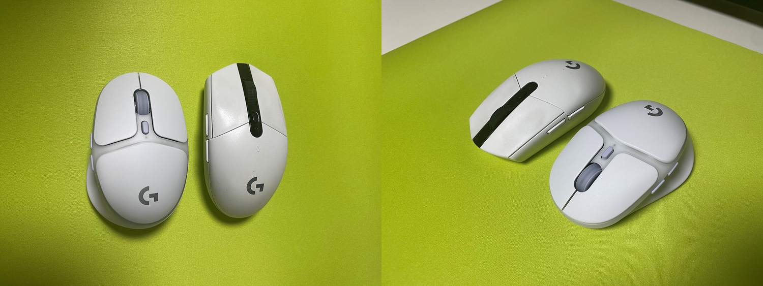 마침 옆에 있던 G304와 비교해봤습니다. G304도 작은 편에 속하는데, 그보다 G705는 그보다도 더 짧습니다.