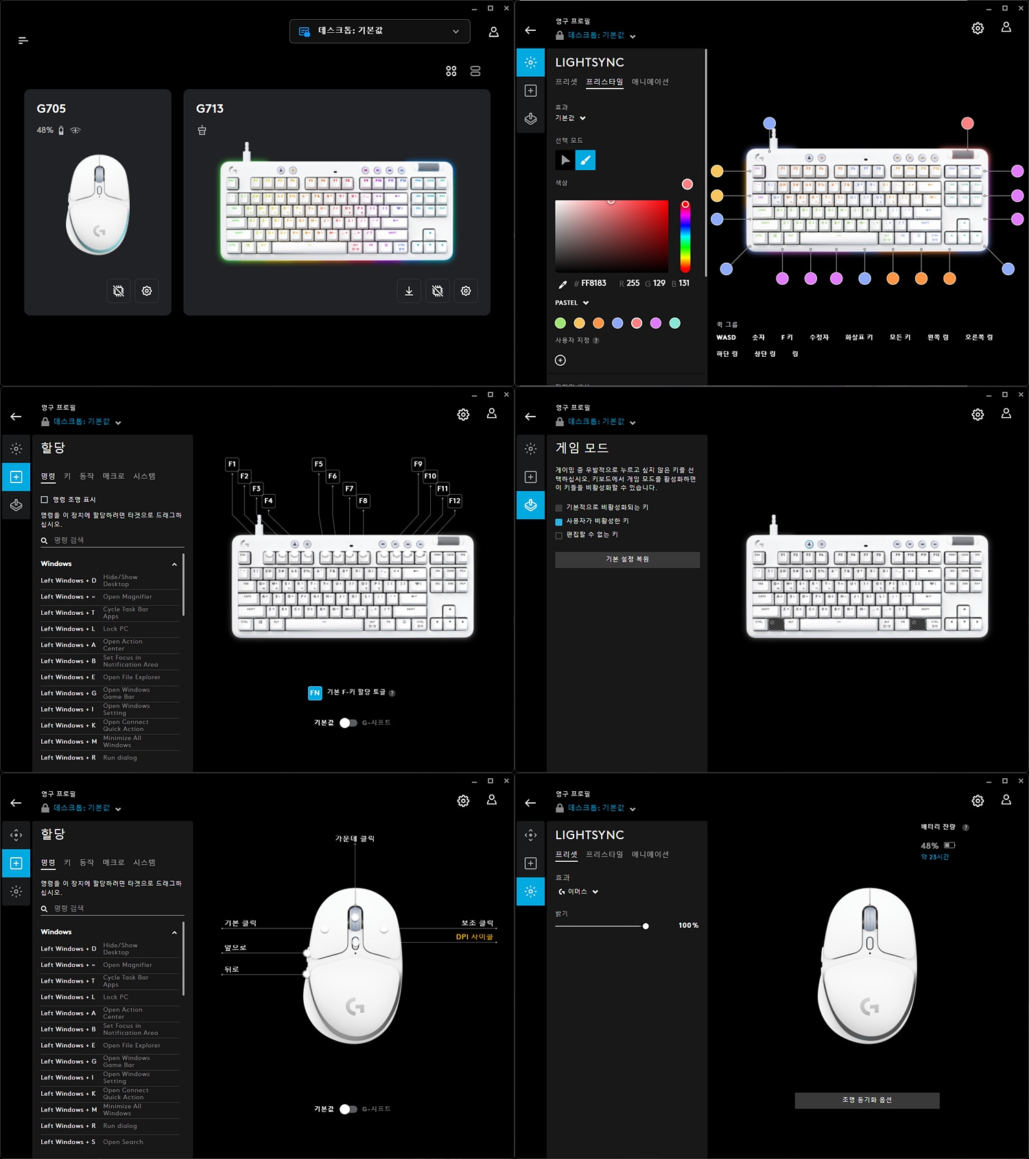 파스텔 콘셉트로 출시된 만큼, 파스텔 톤으로 색상을 바꿔보았습니다. G HUB에서 변경 가능하며, G713은 아예 처음부터 파스텔 톤을 바로 선택할 수 있도록 항목이 마련되어있습니다.