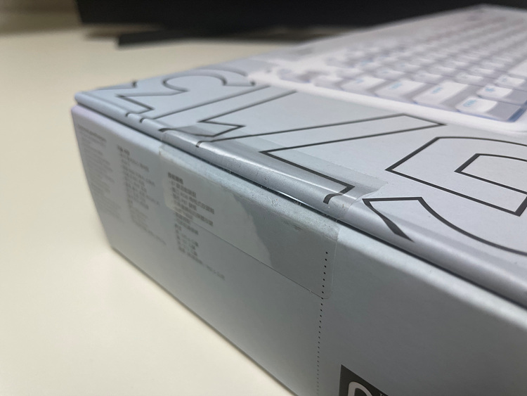 박스 귀퉁이엔 한글 배열을 뜻하는 스티커가 붙어있고, 스위치 종류가 표기되어있습니다. 택타일이네요. 갈축이라고 보시면 됩니다. 마침 제가 쓰고 있는 G915도 택타일인데 같은 축이 왔네요.